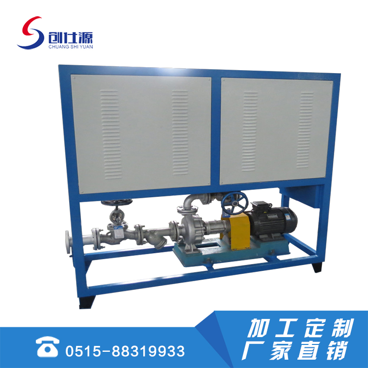 對于導(dǎo)熱油電加熱器,熱量是由浸入導(dǎo)熱油的電加熱元件產(chǎn)生和傳輸?shù),以?dǎo)熱油為介質(zhì),利用循環(huán)泵,強制導(dǎo)熱油進(jìn)行液相循環(huán),將熱量傳遞給用一個或多種用熱設(shè)備,經(jīng)用熱設(shè)備卸載后,重新通過循環(huán)泵,回到加熱器,再吸收熱量,傳遞給用熱設(shè)備,如此周而復(fù)始,實現(xiàn)熱量的連續(xù)傳遞,使被加熱物體溫度升高,達(dá)到加熱的工藝要求。