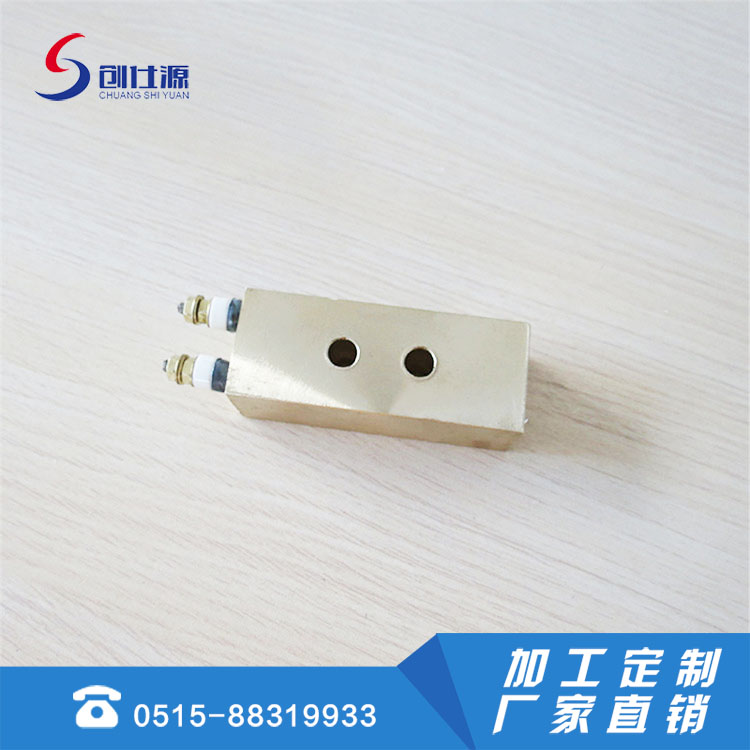 鑄銅電加熱器是金屬鑄造加熱器是以管狀電熱元件為發(fā)熱體,并彎曲成型,進(jìn)入模具用金屬合金材料為外殼以離心式澆鑄成各種形狀,有圓型、平板、直角型、風(fēng)冷、水冷及其它異型等。