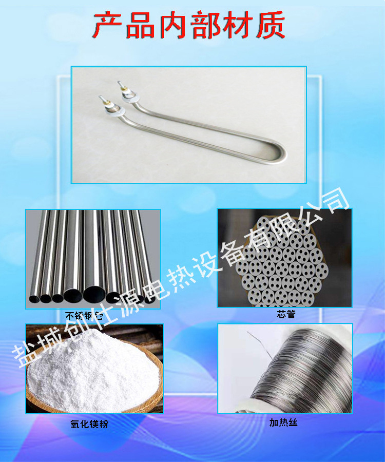 電熱管由金屬管、螺旋狀電阻絲及導(dǎo)熱性好、絕緣性好的結(jié)晶氧化鎂粉等組成,適用于加熱空氣、油、水、化學(xué)介質(zhì)、熱壓模,熔化鹽、堿及低熔點(diǎn)合金等。具有熱效率高、使用壽命長、機(jī)械強(qiáng)度高、安裝方便等特點(diǎn)。