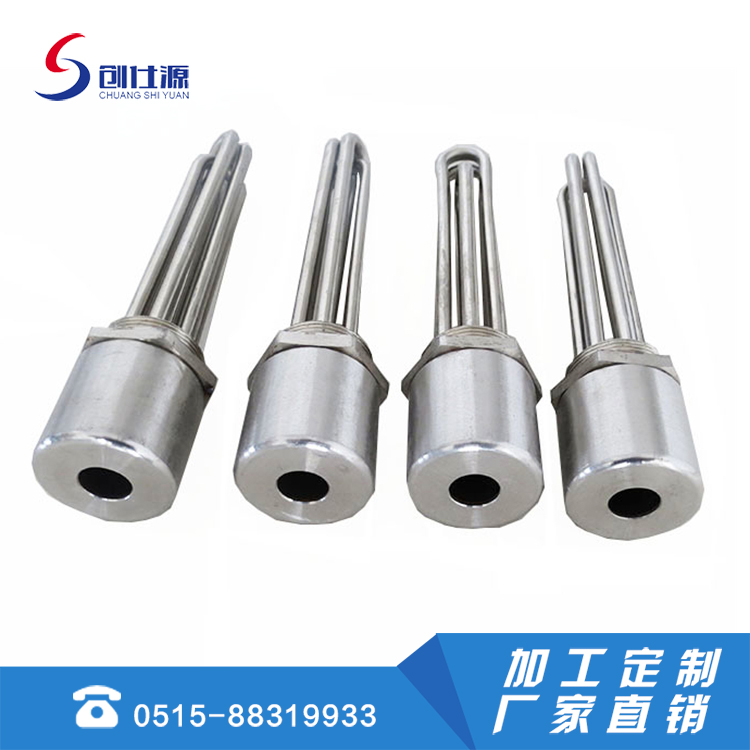 2、電熱管應做好定位固定,發(fā)熱區(qū)須全部浸入液體或金屬固體內,嚴禁空燒。發(fā)現(xiàn)管體表面有水垢或結碳時,應及時清理干凈再用,以免影晌散熱而縮短使用壽命。