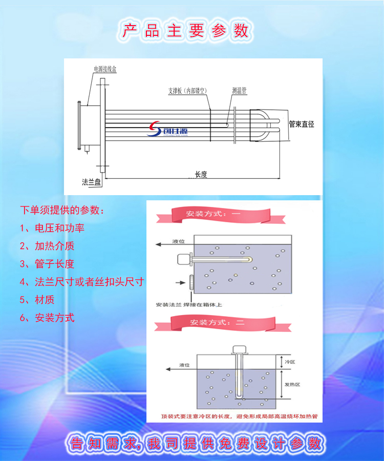 主要用于敞開式、封閉式的溶液箱和循環(huán)系統(tǒng)中加熱用。具有以下幾個優(yōu)點:
